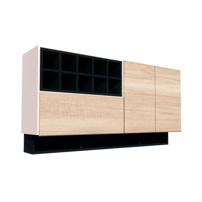 Alacena de 1,60 m. Una combinacion moderna y original para tu cocina. Cuenta con 2 puertas, compartimento de guardado y botellero independiente. El botellero se puede desmontar para utilizar independiente y queda libre espacio para guardado. Debajo estante para colocar como por ejemplo especieros. Material de melamina.