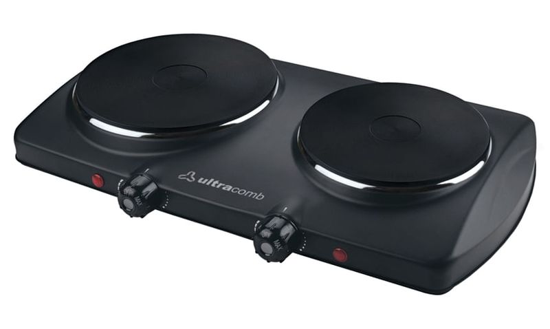 Electrico. 2 Hornallas, grande 1500W (18.5cm diametro), chica 750W (15.5cm). Optimo rendimiento. Temperatura regulable mediante termostato. 2 Perillas frontales c/ 5 posiciones seleccionables en cada hornalla. Luz de encendido. Apoyos antideslizantes.