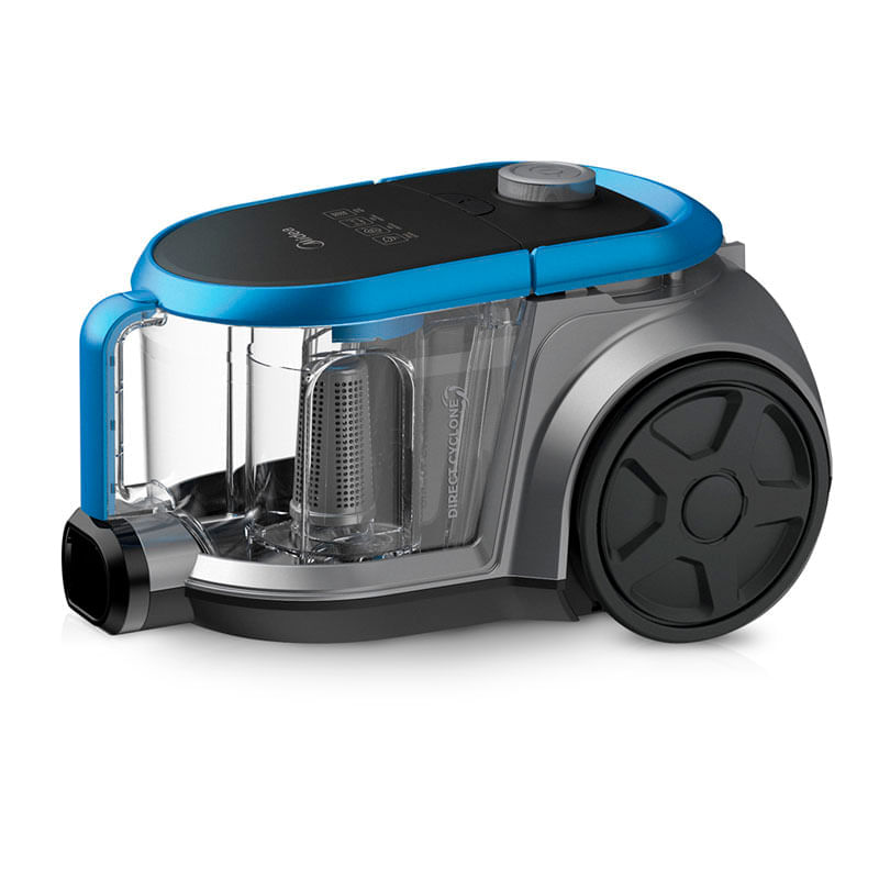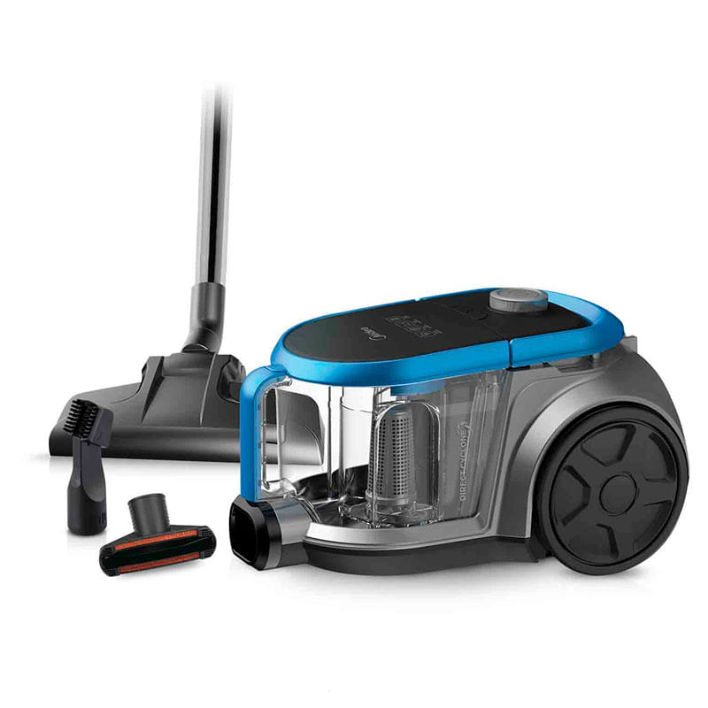 Aspiradora sin bolsa direct cyclone. 2000W potencia maxima. Diseno compacto. Tubo telescopico de extension metalico. Filtro Hepa. Accesorios Cepillo piso con cerdas ajustables, cepillo boca fina 2 en 1, accesorio para tapiceria. Enrollacable automatico (largo 5m). Tanque transparente para indicar nivel de polvo. Recipiente extra grande, facil limpieza. Capacidad recipiente 2L. Las imagenes pueden diferir del producto original.