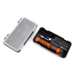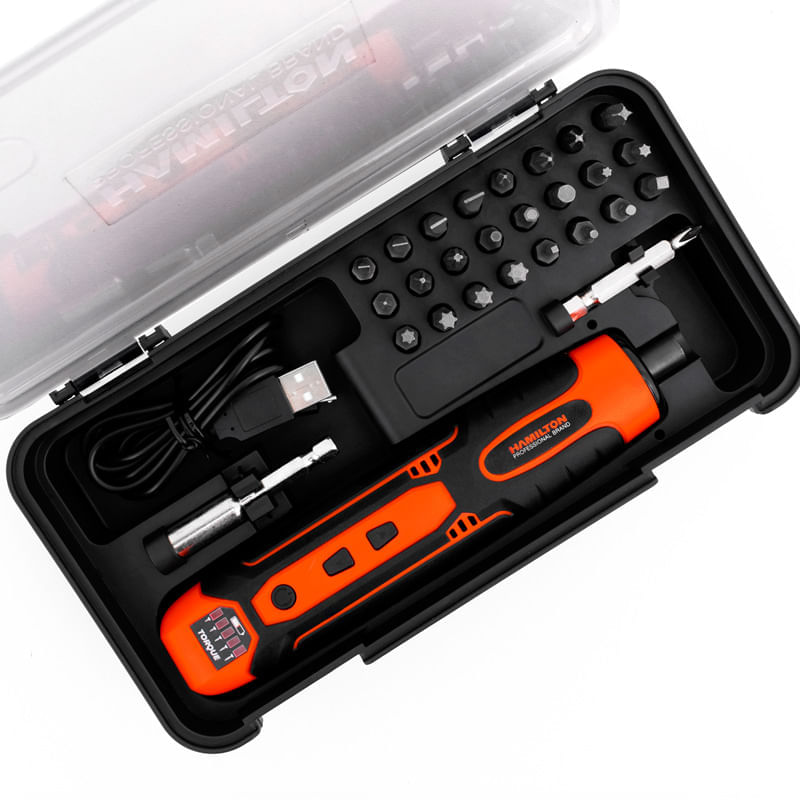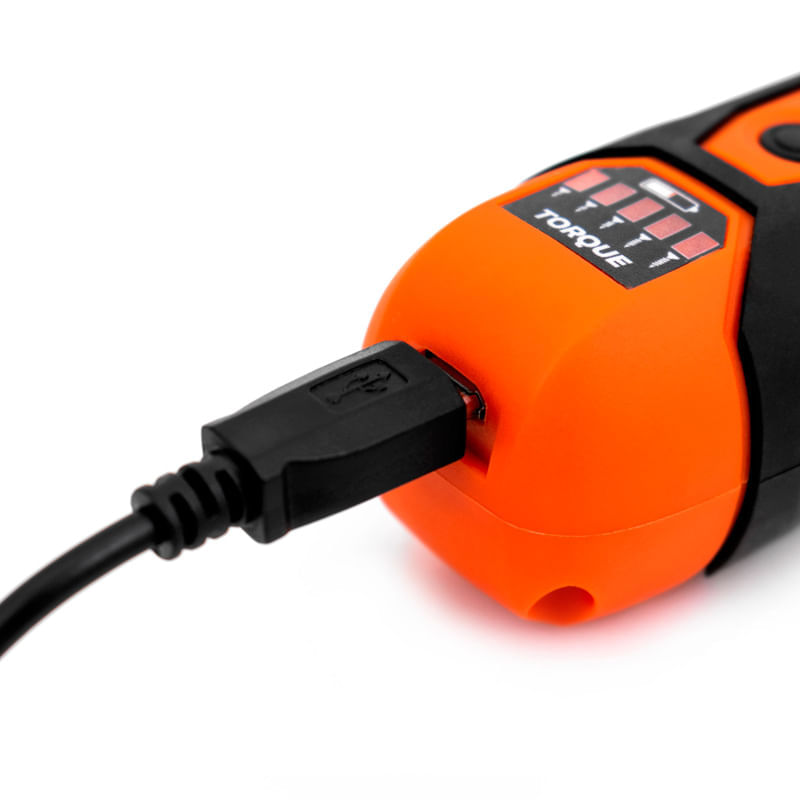 Atornillador inalambrico. Motor brushed de alto rendimiento y bajo consumo. Bateria de Ion-litio (no incluida). 5 Niveles de torque. Velocidad sin carga 300rpm. Mandril encastre 1/4\" (6.35mm). Torque maximo 3 N.m. Tension de bateria 3.6V. Amperaje 1.5 Ah. Torque manual 10 N.m. Luz LED automatica. Carga USB. Incluye cable de carga. adaptador magentico para puntas. Punta PH2. Estuche porta herramientas plastico. 24 Puntas atornilladoras. 4 Puntas cuadradas: S0-S1-S2-S3. 3 Puntas hexagonales: H3-H4-H5. 6 Puntas torx: T15-T20-T25-T30-T35-T40. 3 Puntas pozi: PZ0-PZ1-PZ2. 4 Puntas phillips: PH0-PH1-PH2-PH3. 4 Puntas planas: SL3-SL4-SL5-SL6.