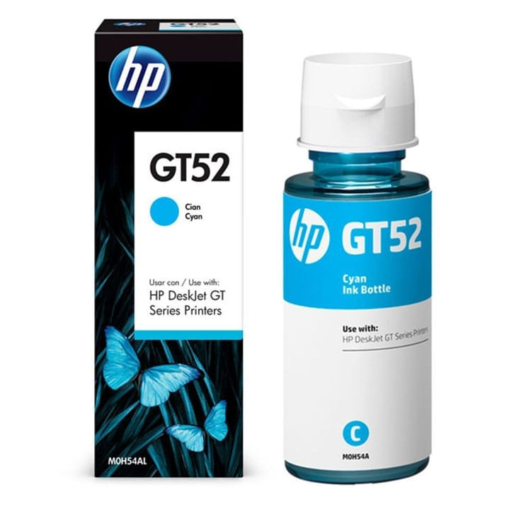 Botella de tinta original Cian HP GT52. Rendimiento aproximado h/8000 paginas. Tinta a base de colorantes. Compatible con Impresoras HP Todo en Uno GT5810 y GT5820.