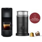 Maquina de cafe Nespresso Essenza Mini Black + Aeroccino 3. Nespresso ha creado su maquina mas compacta hasta el momento sin renunciar a nada: Essenza Mini. La maquina Essenza Mini te permite preparar el cafe perfecto exactamente como a vos te gusta, con dos tamanos de taza programables. Se adapta a tu estilo y espacio. Una maquina pequena que abre las puertas al mundo del cafe Nespresso. Ultra compacta. Uso exclusivo c/capsulas Nespresso. Presion 19 bares. Rapido calentamiento. 2 Botones programables p/cafe express o lungo. Modo Eco. Apagado automatico tras 9 min.de inactividad. Deposito de agua extraible. Nuevo diseno compacto. La nueva maquina Nespresso Essenza mini cuenta con un diseno puro, estilizado y compacto, capaz de adaptarse a cualquier espacio. Su peso de 2.3kg la hace facilmente transportable. Posee bandeja antigoteo. Capacidad del contenedor de capsulas: 6 1. Energia electrica requerida: 220-240 V, 50/60 Hz. Incluye Aerocino 3.