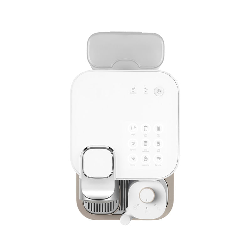 Cafetera de capsulas. Capacidad del tanque de agua 1 litro. Capacidad de la jarra de leche 0.5 litros. Capacidad de bandeja: 1 taza / vaso. Soporte para tazas movil para recetas grandes. Presion 19 bar. Capacidad del contenedor de capsulas: 10-14. Energia electrica requerida: 220-240v, 50/60 Hz, 1300 w/1400 w. Timer (de apagado). Sistema one touch para preparar 9 recetas con recipiente de leche desmontable. Tiempo de calentamiento: 25 segundos (para cafe, 15 segundos mas para bebidas con leche). Longitud del cable 90 cm. Ofrece exquisitas recetas con leche con solo pulsar un boton. 3 Opciones de cafe: Elige entre ristretto, espresso y lungo. Limpieza facil del conjunto del contenedor de leche: Sistema de enjuague semiautomatico tras la preparacion de cada bebida con leche (los componentes del contenedor de leche son aptos para lavavajilla). Avisos de limpieza y descalcificacion: La maquina de cafe te ayuda a garantizar su buen funcionamiento. La imagen es ilustrativa. No incluye taza.