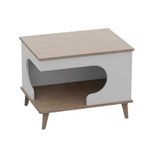 Cama box con patas para mascotas. Material: MDP. Fabricada con materiales reutilizables. Construccion robusta para soportar el uso diario. Fabricada para interior o galeria cubierta. No apto para interperie. Incluye colchon con abrojo.