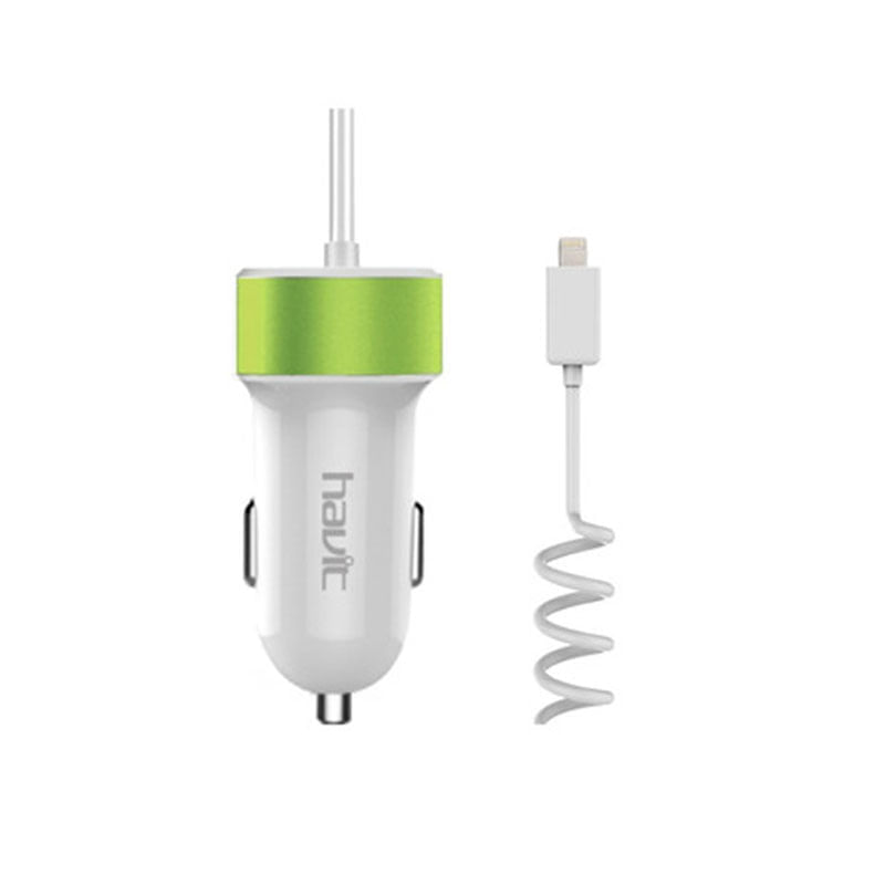 Cargador de encendedor para coche con puerto USB 12V con cable en espiral. Se pueden cargar 2 dispositivos (smartphone, iphone, tablet, PDA, GPS, reproductor de musica portatil y otros dispositivos multimedia) al mismo tiempo, su velocidad de carga alzanca hasta 2.4A. Cuando se cargan 2 dispositivos a la vez su velocidad se repartira entre 2 puertos siendo 1 a 1.2A y otro a 1.2A. Cuando se carga 1 solo dispositivo su velocidad es de 2.4A. Con indicador luminoso.