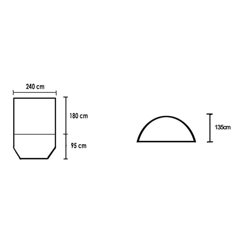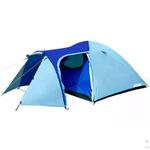 Carpa para cuatro personas. Confeccionada en PU 68D 190 Taped Seam 2200mm Water Column. Ventilacion Poly Mesh No See Um. Color firme con tratamiento UV Tex V para rechazo solar. Piso con socalo en una pieza reforzado en polietileno 120. Doble puerta de acceso. Ventilacion Cenital. Puerta ciega de unidad basica con ventilacion incorporada y mosquitero con tapa ciega. Con cierre relampago. Estructura con memoria Durawrap 8,5mm.