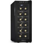 Cava termoelectrica para proteger la calidad y el sabor de sus vinos a largo y corto plazo. Con capacidad de hasta 12 botellas. La estabilidad de los vinos y sus sedimentos naturales no se veran alterados gracias a su sistema sin compresor, silencioso y sin vibraciones. Aislamiento especial interior para mantener una humedad constante. Es adecuada para espacios reducidos. Posee un diseno pequeno y compacto. Potencia: 70 W. Sistema de refrigeracion: Termoelectrico. Capacidad neta: 35L (12 botellas). Rango de temperatura: 11C - 18C. Luz LED azul interna. Puerta con doble vidrio templado. 5 rejillas de cromo separadoras. Controlador del panel tactil con indicador LED.