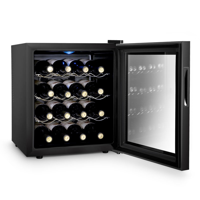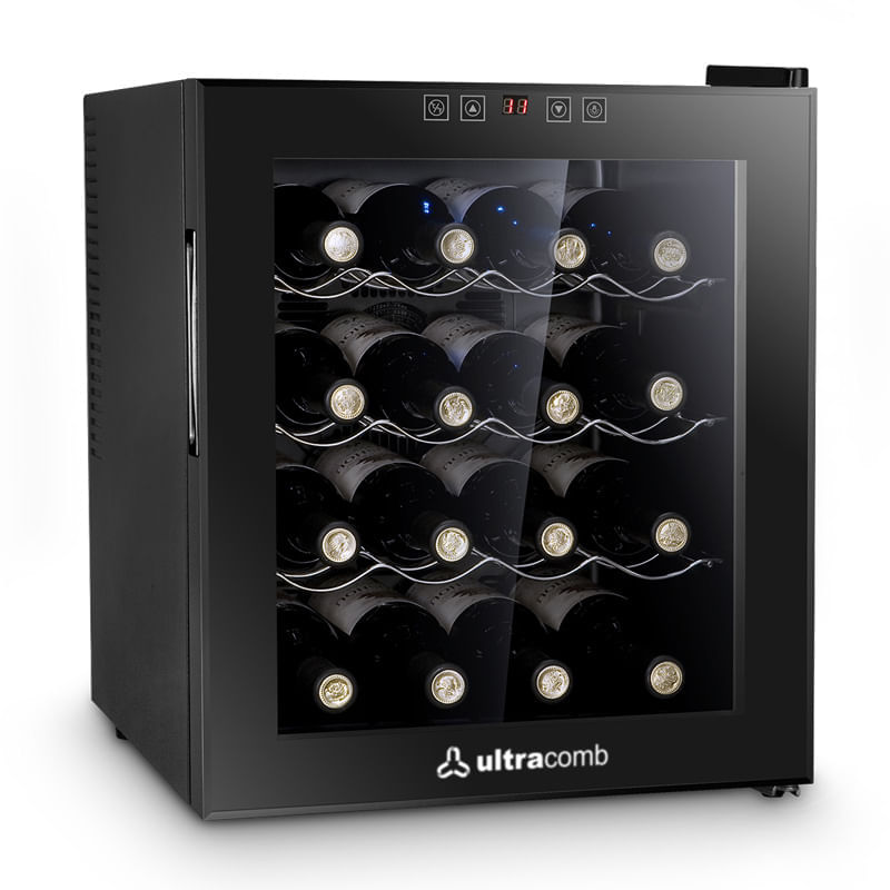 Cava termoelectrica para proteger la calidad y el sabor de sus vinos a largo y corto plazo. Con capacidad de hasta 16 botellas (50 litros). La estabilidad de los vinos y sus sedimentos naturales no se veran alterados gracias a su sistema sin compresor, silencioso y sin vibraciones. Aislamiento especial interior para mantener una humedad constante. Es adecuada para espacios reducidos. Posee un diseno pequeno y compacto. Potencia: 70 W. Sistema de refrigeracion: Termoelectrico. Luz LED azul interna. Puerta con doble vidrio templado. 3 rejillas de cromo separadoras. Controlador del panel tactil con indicador LED.