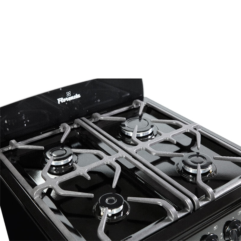 Cocina bigas de 56 cm. Puerta de horno con doble vidrio templado. Valvula de seguridad en horno y hornallas. Con eficiencia energetica clase A. Enlozado de horno easy clean. Luz en horno. Encendido electrico de horno y hornalla. Rejillas de horno extraible con la apertura de horno. Rejillas antivuelco de fundicion divididas en dos para hornallas. Cajon parrilla deslizable. Timer. Sistema multigas o bigas. Color negra.