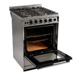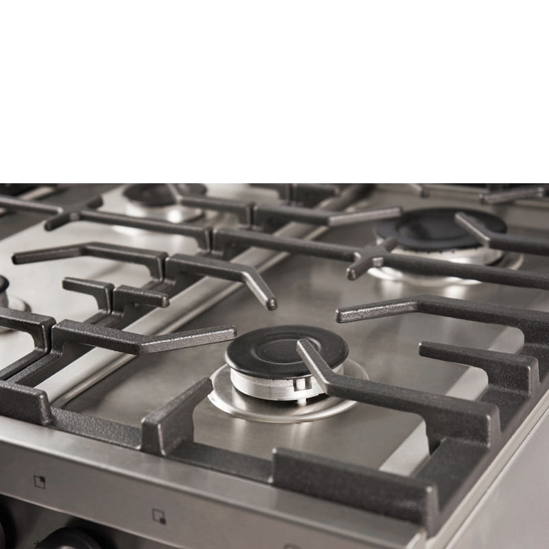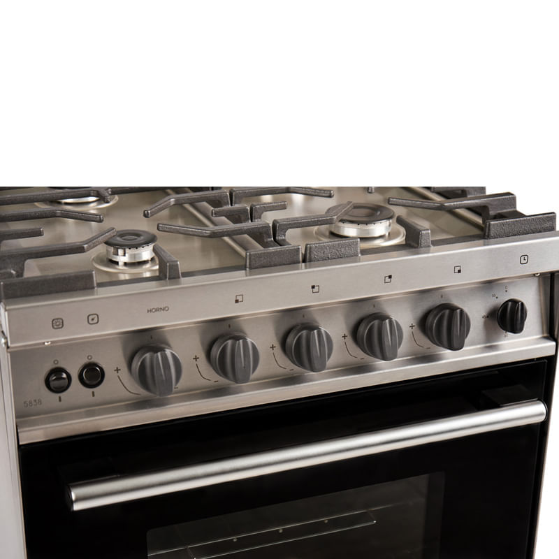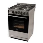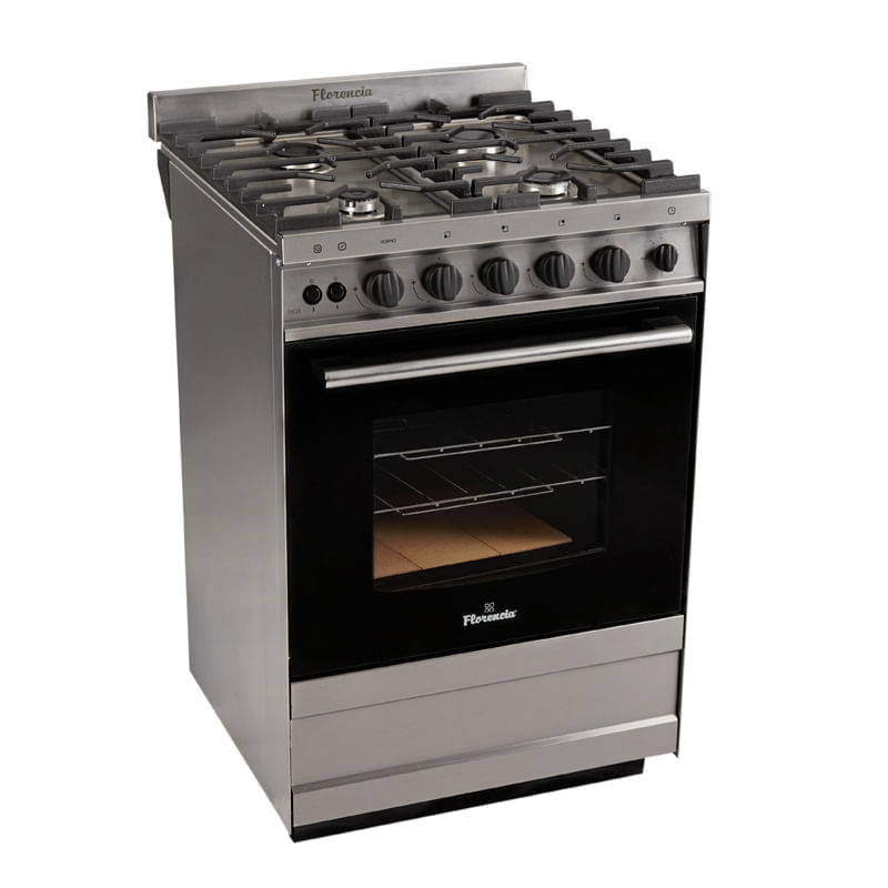 Cocina Gastronomica totalmente de acero inoxidable. Puerta de horno con doble vidrio templado. Valvula de seguridad en horno y hornallas. Piso de horno con ladrillo refractario. Enlozado de horno easy clean. Rejillas de horno extraible con la apertura de horno. Luz en horno. Encendido electrico de horno y hornalla. Rejillas antivuelco de fundicion divididas en dos para hornallas. Timer. Sistema multigas o bigas, 56 cm de ancho.