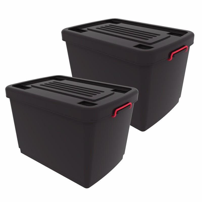 Juego de 2 Contenedores Heavy Box 95 Lts. Multiuso, cada contenedor posee dos manijas que actuan como trabas y junto con las tapas ayudan a darle un mejor cierre. Ademas cuenta con 4 ruedas para su mejor traslado y tapas de cierre hermetico de gran resistencia que permite apilar para ahorrar espacio. Son faciles de limpiar, los materiales que lo componen son totalmente reciclables. Apilables.