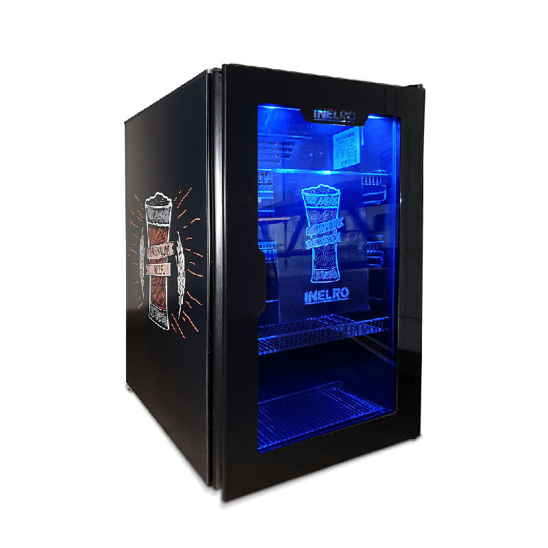 Exibhidora vertical. Capacidad bruta y neta 106L. Rango de temperatura de 0 a 7. 3 Estantes. Tipo de estantes de reja. Luz interior. Compresor de ultima generacion. Termostato mecanico. Puerta doble vidrio exterior templado Low-e. Estantes con tratamiento anti corrosion. Condensacion: estatica. Evaporador: Roll Bond. Ventilador evaporador: tangencial. Agente espumante: Ciclo Isopentano (Libre CFC, 38Kg/M). Gas refrigerante ecologico (R134a, libre CFC). Puerta GLASS SKIN. Interior gabinete: ABS. Exterior gabinete: Electrozincado - Prepintado. Consumo potencia 270w. Voltaje 220v. Consumo 2 A. Frecuencia 50 Hz.