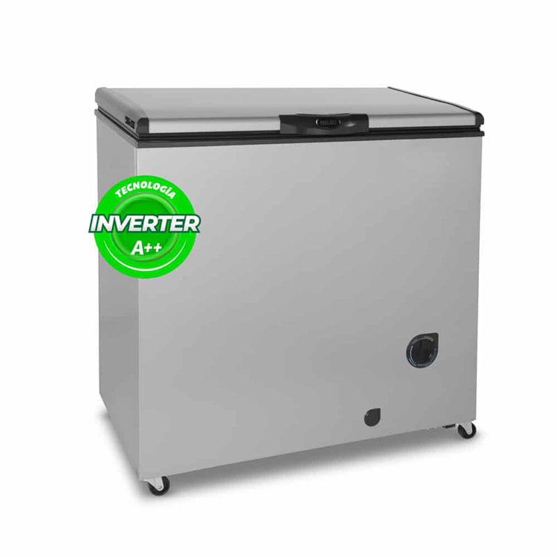 Freezer horizontal. Volumen bruto y neto 215L. Eficiencia energetica A++. 4 Funciones. Desagote frontal. Ruedas. 1 Puerta. 1 Canasto.