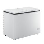 Freezer horizontal. Volumen bruto 417. Volumen neto 414. Eficiencia energetica B. Desagote frontal. Funciones: control de temperatura electronico. Minimo - Maximo - Medio (5 niveles de temperatura + Super Frio). Funcion fast freezing: con esta funcion super frio se puede acelerar el enfriamiento de los alimentos y bebidas cada vez que sea necesario. Mayor frescura y mejor conservacion asegurada. Panel led. Para mayor seguridad en el hogar, cuenta con llave en la puerta. Gran resistencia: Interior fabricado con aleacion de metal de alta resistencia a la corrosion. Easy clean: Facil de limpiar con el desague frontal, simplemente se debe colocar un recipiente debajo del desague para recoger el hielo derretido. 4 Ruedas. 2 Puertas. Estante de alambre en acero. Cycle frost.