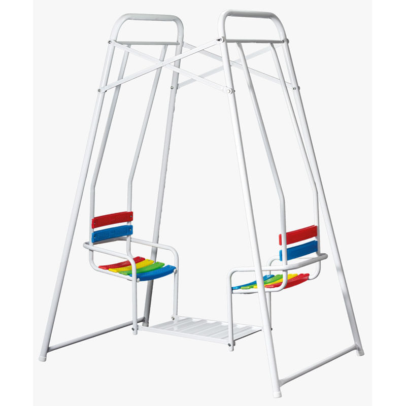 Hamaca duo. 1.70m de altura. Apoyapies cerrado. Estructura ultra resistente en cano de acero, pintura epoxi blanca, asientos tablas de PVC reforzado