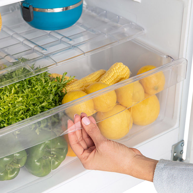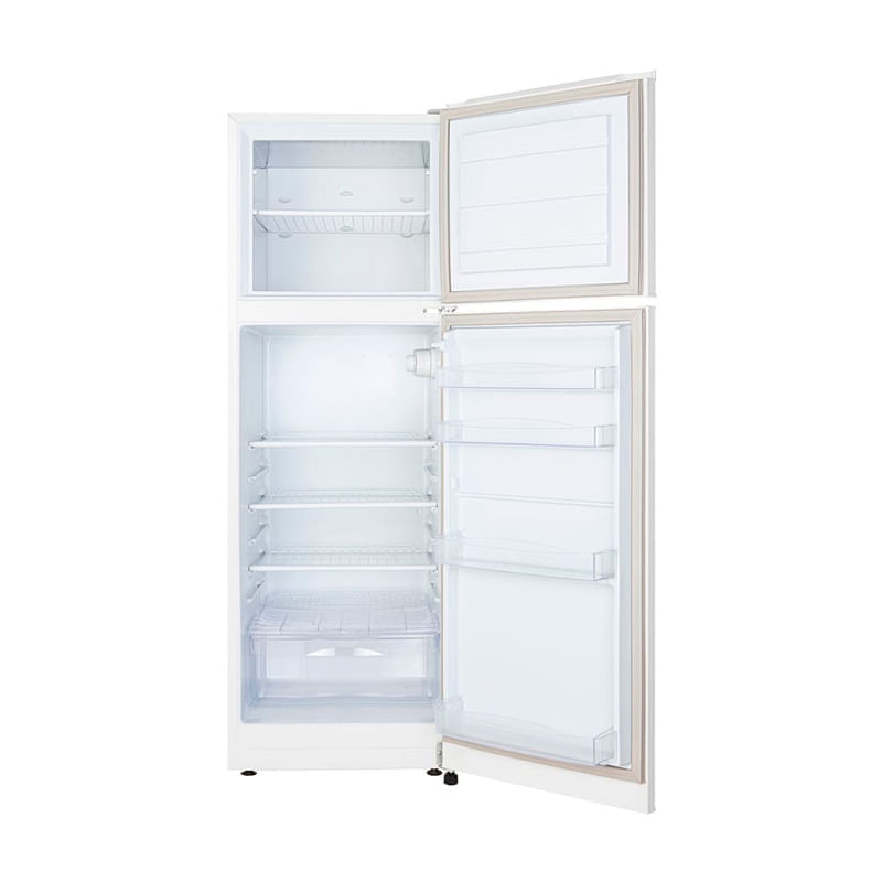 Heladera con freezer. Volumen Bruto 277 Lts. Volumen Neto: 264 Lts. Sistema de enfriamiento: Ciclico. Ubicacion del freezer: Superior. Tipo de controles: Mecanicos. Eficiencia Energetica: A. Crisper para frutas. Tipo de estantes: Alambron y removibles. Ruedas. Pies Regulables. Anaqueles en contrapuerta. Luz led interior. \"Las imagenes son meramente ilustrativas\".