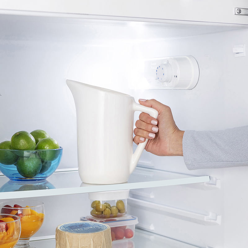 Heladera con freezer. Volumen neto 395 / volumen bruto 397. Sistema de enfriamiento cycle defrost. Ubicacion del freezer superior. Control analogico interior. Eficiencia energetica A. Crisper para frutas. Crisper especial multiuso. Estantes removibles. Pies regulables. Ruedas traseras. \"Las imagenes son meramente ilustrativas\".