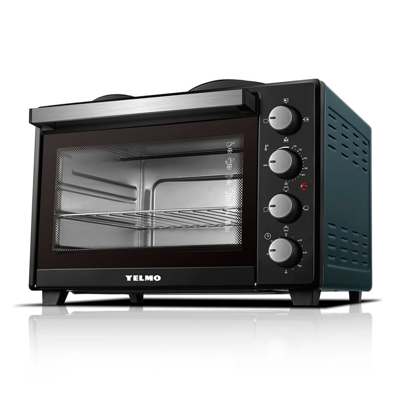 Horno Electrico. Potencia: 1600W. Capacidad: 45 Lts. Capacidad util 35L. Rango de temperatura: 100 a 250. Estante regulable. Grill. Gabinete: Metal. Timer: 60 minutos. Termostato. Controles: 4.