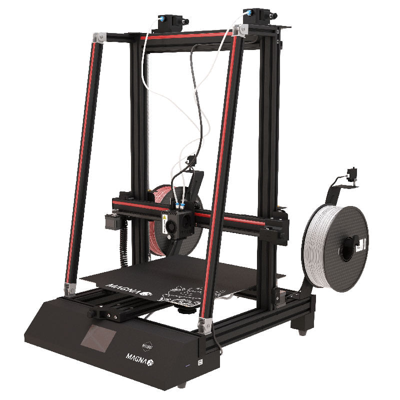 Impresora 3D equipada con un doble extrusor Dual Drive de ultima generacion y un hotend 2 en 1 con cambio en frio. Este sistema permite el paso de un material a la vez, manteniendo el hotend limpio y con la temperatura justa cuando ingresa el nuevo material evitando que se obstruya el paso. El usuario podra utilizar variedad de materiales y colores, optimizando las impresiones y logrando resultados increibles. Tecnologia: FDM. Volumen: 300mm x 300mm x 400mm. Velocidad: 80mm/s mximo. Recomendado 50mm/s. Altura de capa: 100 - 400 micrones. Precisin: - 0,1mm. Extrusor: Bowden, dual drive, Doble o simple opcional. Archivos soportados: Gcode. Dimetro de filamento: 1.75mm. Cantidad de extrusores: 1 o 2 opcional. Nivelacion de cama: Manual, asistida de 5 puntos. Plataforma: Cama calienta metlica, magnetica, flexible con sticker adherente. Recuperacion de energia. Peso: 13.2kg. Carcasa: Aluminio y chapa plegada. Tamano de impresora: 55x64x73CM. Display: Tactil full color de 3.5 pulgadas. Fuente interna: Entrada: 110/220v 50/60Hz. Salida: 24v 3.15A. Cama caliente: 220v / 500w. Consumo Maximo: 575w (Fuente 75w cama 500w). Consumo promedio: Aprox 300w. Software Slicer: Ultimaker Cura recomendado. Cualquier software Slicer con exportacion de archivos Gcode. Archivos permitidos por software: STL, OBJ, 3MF, ETC. Filamentos: PLA, ABS, PETG, HIPS, WOOD, TPU/FLEX. Conectividad: Tarjeta Micro SD, Cable USB, WIFI. Idiomas: Espanol, Ingles. Aplicacines: Hobbista, diseno industrial, arquitectura, industrial, medicina, robotica, otros.