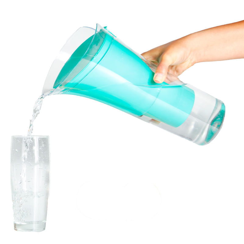 Jarra Sense verde + filtro de agua . Dura toda la vida, se reemplaza la unidad filtrante que se encuentra en el interior del dispositivo al termino de su vida util. Se introduce el agua de red en su interior, el agua se filtra por gravedad y queda lista para tomar. Rendimiento de cada filtro: 2.500 litros (aproximadamente 4 meses de uso). Material de la carcasa: Poliestireno cristal. Capacidad / caudal: 150 ml cada 60 segundos. Tipo de filtro: Carbon activado impregnado en plata pura en estado coloidal y resinas de intercambio ionico. Tipo de montaje: Portatil.
