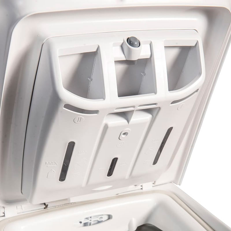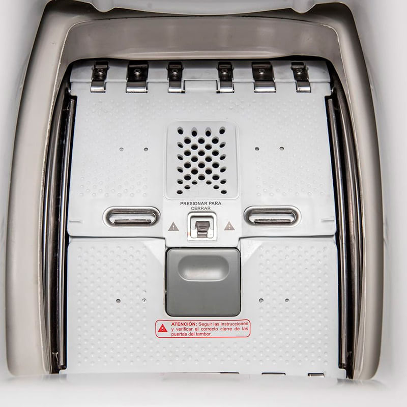 Lavarropas Carga Superior. Sistema Europeo. Cap. 6Kg. 23 Programas. 800 RPM. Eficiencia Energetica A+. Color Blanco. Carga Autoadaptativa. Panel de 8 LED"s. Sistema Autobalance. Selector de programas bidireccional transiluminado. Exclusion de Centrifugad. Altura con tapa abierta 127cm.