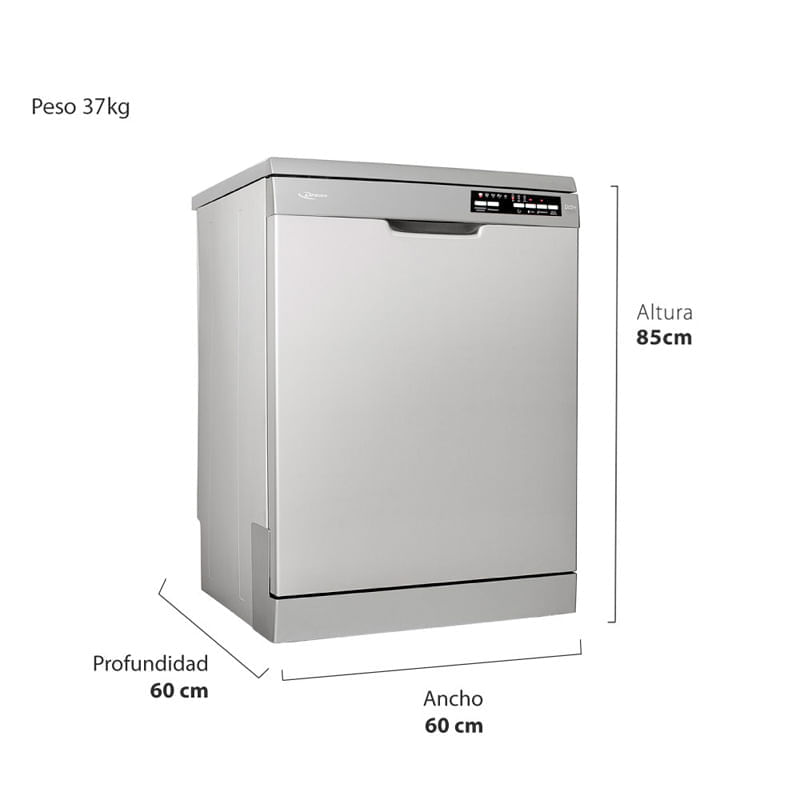 Lavavajillas. Gabinete de acero inoxidable. 1/2 Carga. Lavado rapido. Lavado intensivo. Lavado delicado. Eficiencia energetica A++. Controles tactiles-LED. Capacidad 12 cubiertos. 5 Programas. 2 Niveles de aspersores. Temeperatura de lavado de 5 a 75.