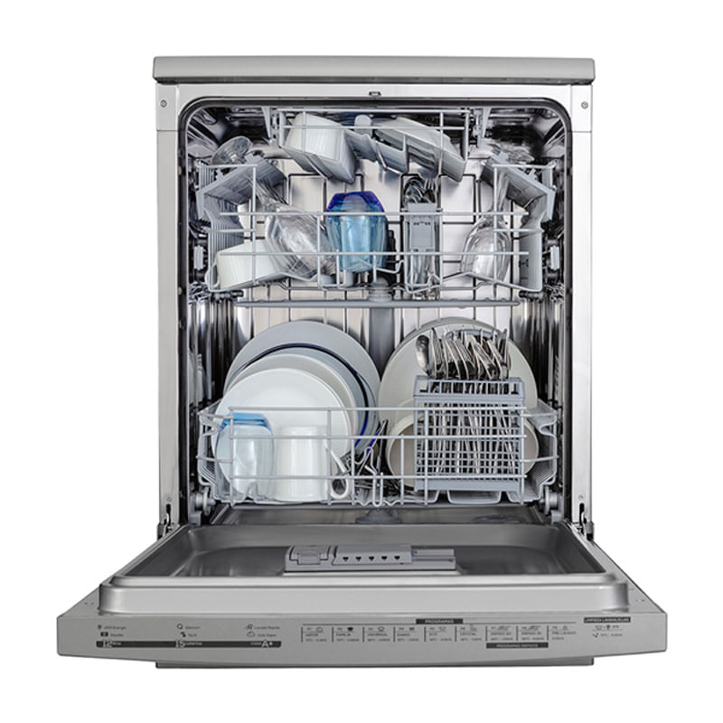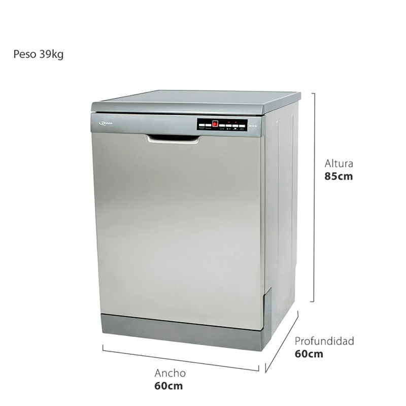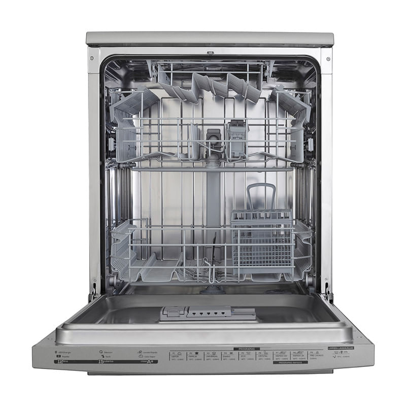 Nuevo panel tactil digital. Inoxidable c/gris. Cap.p/15 cubiertos. 3 Cestos. Bajo consumo de agua y energia. Inicio diferido. 9 Programas de lavado (vapor, rapido, crystal, pre-lavado, ECO, etc). Funcion Limpieza Lavavajillas. Indicador de falta de sal.