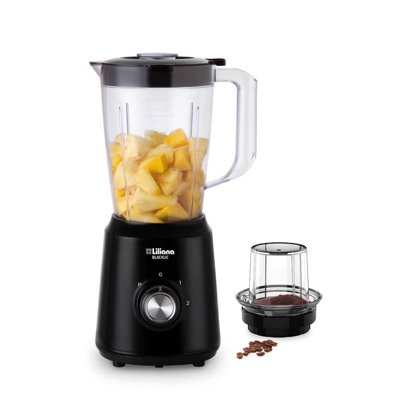 Licuadora. Jarra de Plastico de 1.5 Lts. 2 velocidades + pulsador. Potencia 600W. Molinillo de Granos / Picador. Tritura hielo. Cuchilla de acero inoxidable. Tapa para agregar ingredientesen funcionamiento. Pico vertedor.