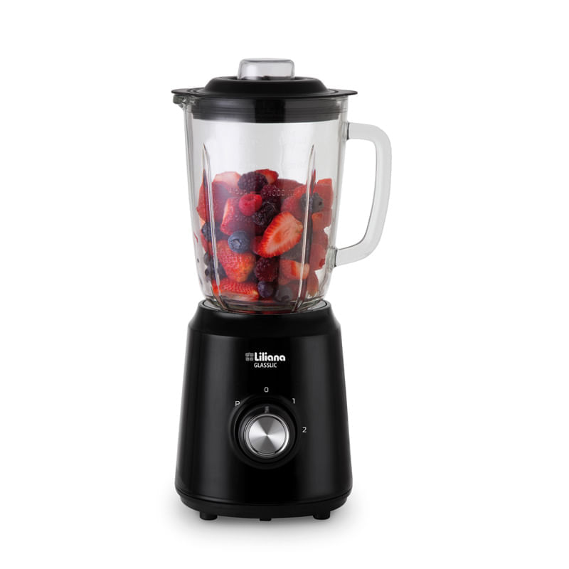 Licuadora. Jarra de Vidrio de 1.5 Lts. 2 velocidades + pulsador. Potencia 850W. Tritura hielo. Cuchilla desmontable de 4 hojas para facil limpieza. Tapa para agregar ingredientes. Patas antideslizantes. Enrollacable.