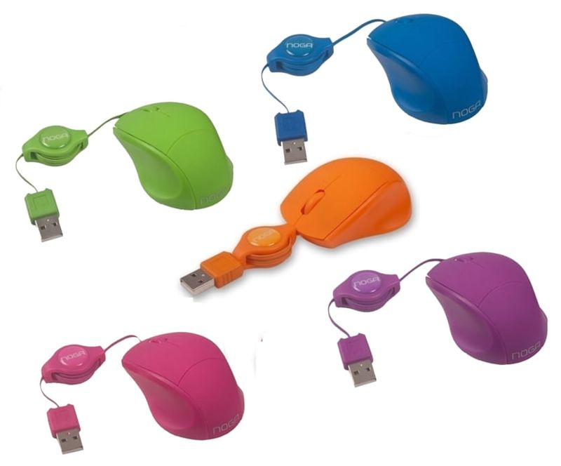 Mouse optico. Diseno ergonomico Mini. 3 Botones y Scroll. Resolucion 800 dpi. Cable retractil. Conexion USB. Zoom y Auto-Scroll en Office. Colores varios.