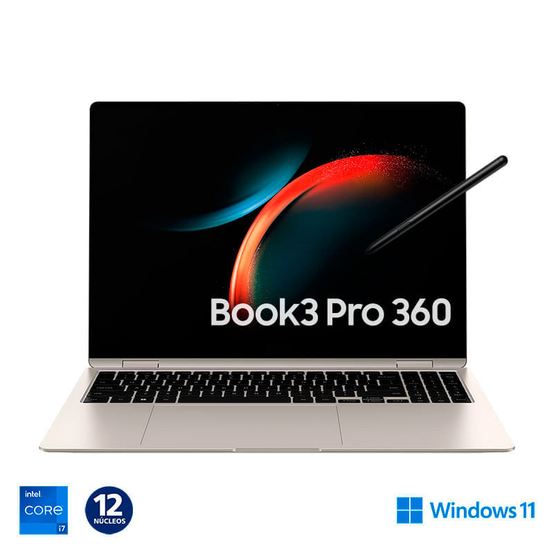 Notebook 2 en 1. Pantalla de 16\" Dynamic AMOLED 2X, WQXGA+ (2880x1800), 400nits, 120Hz, 120% DCI-P3 Color volume. Procesador Intel Core i7-1360P 13 Generacion (2.2 hasta 5.0 GHz), 18 MB L3 cache. Capacidad 512 Gb NVMe SSD. RAM 16 Gb LPDDR5. Placa de video Intel iris Xe graphics. Conexiones: Bluetooth 5.1. Wi Fi 6E (Gig+), 802.11 AX 2x2. USB 3.2. 1 HDMI. 2 Thunderbolt 4. Entrada para microfono. Lector de tarjetas Micro SD. Microfono incorporado. Sistema operativo Windows 11. Camara posterior 1080p FHD. Bateria 76 Wh.