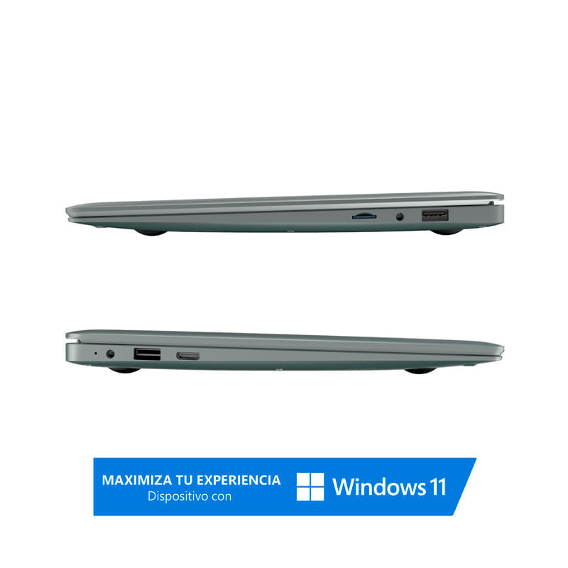 Notebook. Pantalla LED de 14.1\" HD (1366x768). Procesador Intel Celeron N4020 (1.10 hasta 2.80 GHz). Capacidad 64GB SSD + 256GB SSD. RAM 4 Gb. Placa de video Graficos UHD Intel 600. Conexiones: Wi Fi. Bluetooth 4.0. 1 x USB 3.0 / 1 x USB 2.0. HDMI. Lector de tarjetas. Microfono incorporado. Sistema operativo Windows 11. Camara HD. Bateria de 5000 mAh.