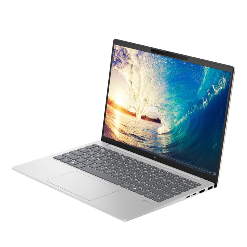 Notebook. Pantalla de 13.30\" FHD (1920x1200) con microbordes, antirreflejante, 400 Nits y 100% de sRGB. Procesador AMD Ryzen 5 8640U (velocidad de rafaga de 3.5 hasta 4,9 GHz,16 MB de cache L3, 6 nucleos,12 subprocesos). Almacenamiento de 512 GB SSD. Almacenamiento en Dropbox de 25 GB durante 12 meses. Memoria RAM de 16 GB LPDDR5x-6400 MHz (integrada). Placa de video integrada: Graficos AMD Radeon. Conexiones: Tarjeta inalambrica Realtek Wi-Fi 6 (2x2) y Bluetooth 5.3 (compatible con velocidad de datos de Gigabit). Espera moderna (conectada); LAN inalambrica de rango extendido de HP. 2 USB Type-C con velocidad de senal de 10 Gbps (USB con suministro de energia, DisplayPort 1.4 y suspension y carga de HP). 1 USB Type-A con velocidad de senal de 10 Gbps. 1 USB Type-A con velocidad de senal de 5 Gbps. 1 salida HDMI 2.1. 1 combo de auriculares/microfono. Sistema operativo Windows 11 Home. Camara frontal de 5 MP con obturador fisico y visible que apaga la camara del equipo cuando no esta en uso. Bateria de polimero de iones de litio de 3 celdas y 43 Wh. Duracion de la bateria Hasta 11 Horas y 30 Minutos.