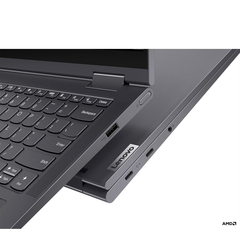 Notebook. Pantalla tactil de 14\" FHD, GL_300N_MT_N_72%. Procesador AMD Ryzen 5-5600U (2.3 hasta 4.2 GHz). Capacidad 512GB_SSD_M.2_2280_NVME_TLC / RAM 8GB(4X16GX32)_LP4X_4266. Placa de video integrada. Conexiones: Wi Fi WLAN_2X2AX. Bluetooth. Lector de ta