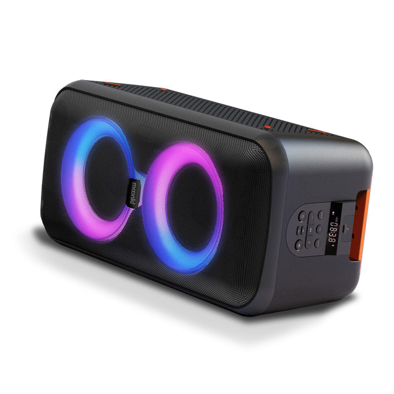 Parlante potenciado. Potencia PMPO 900w. Potencia RMS 60W. Placa Amplificadora D. Woofer 2 x 5\" - Iman de 720g. Tweeter 1 x 1\". Iluminacion LED. Pantalla LED. Conectividad Bluetooth 5.0. Entradas microfono, guitarra, USB (solo carga). Funcion TWS. Bateria recargable 12V 4000mAh. Incluye control remoto.