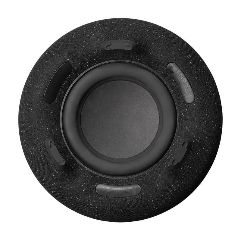 Parlante portatil. Potencia 100W. Bluetooth 4.2. Transductores: 40 mm x 6 piezas (rango medio-alto) y 130 mm x 1 Ud. (altavoz de subgraves). Potencia nominal: 2 x 15 W RMS + 1 x 100 W RMS. Respuesta de frecuencia: 45 Hz 20 kHz (-6 dB). Relacion senal/ruido: 80 dB a 15 W (rango medio-alto); 80 dB a 100 W(altavoz de subgraves). Potencia del transmisor bluetooth: 0 9 dBm. Altavoz Bluetooth con iconica cupula transparente e iluminacion tematica. Rendimiento de sonido superior. Subwoofer de 5,2\" orientado hacia abajo que potencia tonos graves ricos y profundos. Iluminacion unica con efecto de diamante que baila al ritmo de la musica.Fabricado en parte con 100% reciclado. Incluye 1 Cable de alimentacion.