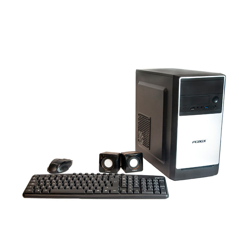 PC de escritorio. Procesador AMD Ryzen 5-4600G (3.7 hasta 4.2 Ghz). Capacidad 240 Gb SSD. RAM 8 Gb. Placa de video AMD radeon integrada. Sistema operativo Windows 11. Conexiones: lector de tarjetas. Incluye teclado, parlantes y mouse.