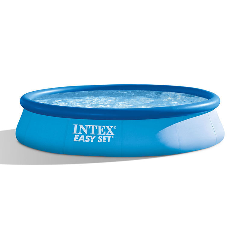 Pileta Intex con aro superior inflable De la linea Easy Set, la pileta es redonda y las medidas son: 396X84 cm Tiene una capacidad de 7290 litros de agua y esta pensada para ser utilizada por 4 personas, mayores de 6 anos de edad. Lona fabricada con tecnologia Super-Tough. Vinilo. Tiene tres capas de material extrafuerte laminadas que proporcionan una mayor resistencia y durabilidad. La capa superior pvc de gran espesor en relieve. Capa Media, malla de poliester reforzada de gran resistencia. Capa inferior PVC, de gran espesor en relieve. Este modelo de piletas elevadas incluye: bomba filtrante de 2006 litros/hora Tiene un tapon de vaciado que permite la conexion a una manguera de jardin para que se pueda desagotar hacia areas alejadas de la vivienda o de la pileta. La pileta Intex es de facil instalacion: extender sobre terreno firme y nivelado, inflar el anillo superior y llenar con agua Esta lista para ser usadas en 15 minutos, cuando alcanzan la forma definitiva al terminar el proceso de llenado. Incluye parches de reparacion.