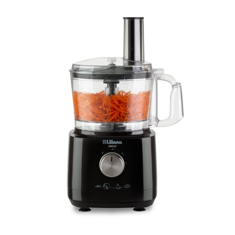 Procesadora. Potencia 750W, 2 Velocidades. Boton pulsador. Capacidad del bowl 1.2L. Pica, ralla, rebana, tritura, amasa. Cuchillas de acero.