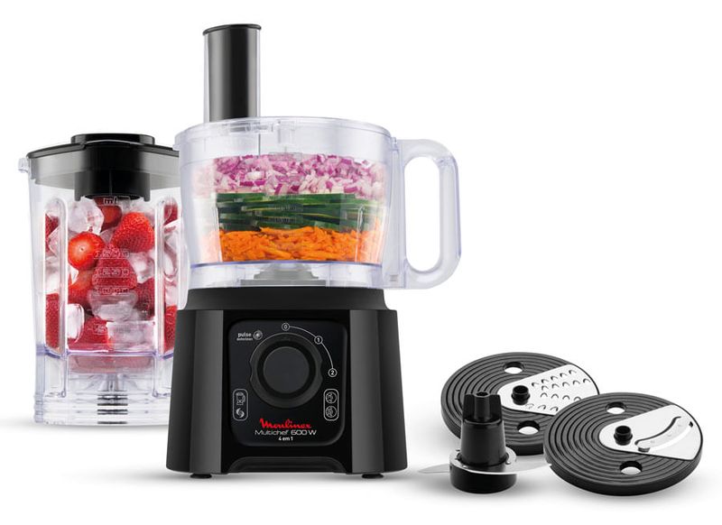 Multirocesadora 4en1. 2 velocidades. 600W de potencia. Funcion pulsar, tritura los ingredientes mas duros. Funcion picar, cuchilla de acero inoxidable para picar carne, cebolla y mucho mas. Funcion licuadora, licuadora con vaso transparente. Funcion rallador fino, para rallar zanahoria, remolacha , papa, queso, coco y mucho mas. Funcion rebanar, para rebanar zanahoria, papa, pepino y muchos ingredientes mas. Capacidad de 1,5 L. Jarra licuadora con capacidad de 3,1 L. Cuchillas de acero inoxidable de alta resistencia , para licuar, mezclar y triturar diversos tipos de ingredientes.
