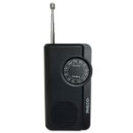 Radio portatil. Bandas AM/FM. Dial con indicador de escala dual. Parlante dinamico incorporado. Cuerpo ergonomico y anti deslizante. Alimentacion 2 pilas AAA. Antena telescopica. Salida para auriculares.