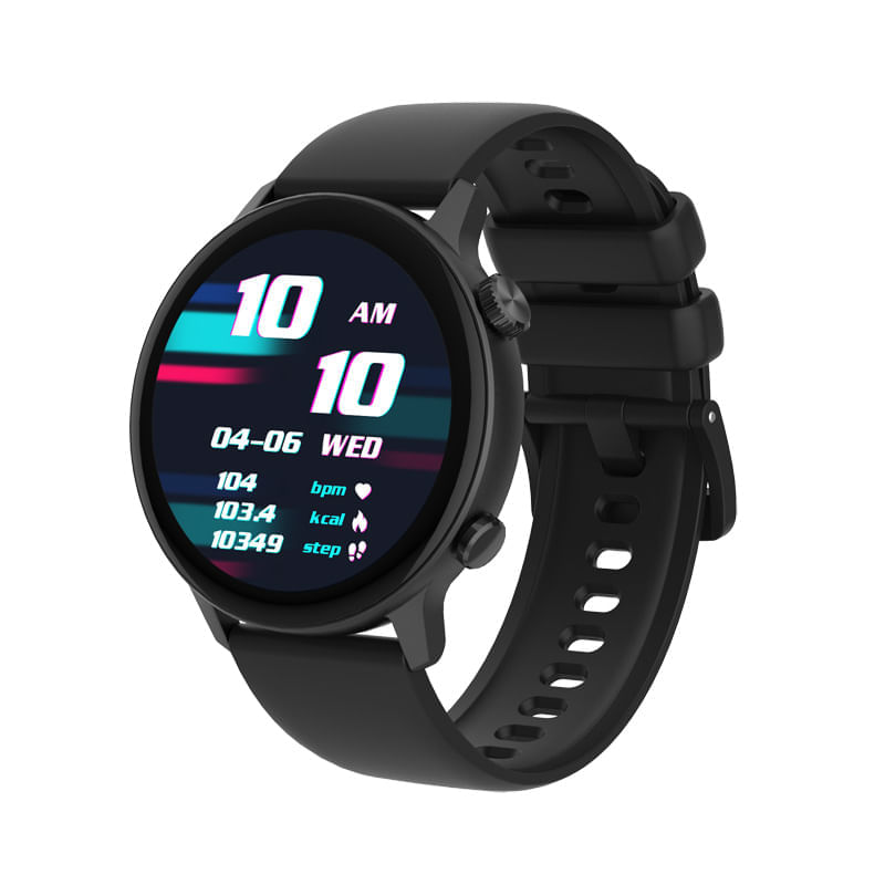 Reloj smart. Malla de silicona. Cuerpo de metal. Display 1.43\" amoled Full Touch 466x466. IP67 resistente al agua. Monitor de pulsaciones. Recibe notificaciones. Medidor de oxigeno en sangre. Podometro (Distancia recorrida). Monitor de sueno. Recordatorio de sedentarismo. Ciclo menstrual. Control remoto de reproductor. Control remoto de camara. Compatible con Android & iOS. Procesador Realtek8763EWE-VP. RAM 578 kb / ROM 128 KB. Conexion Bluetooth v5.3. Autonomia de 5-7 dias. Bateria de 260 mAh. Carga USB (cable magnetico 2 pines). Boton mecanico lateral.
