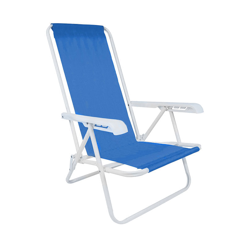 Reposera de 4 posiciones. Medidas: 73,5 x 54 x 83,5cm. Peso: 2,58Kg. Material - Composicion: Acero 79,53%, tela 5,82%, plastico 14,65%. Estructura en tubos de acero pintado. Tela 100% poliester con revestimiento en PVC. Color: Azul.