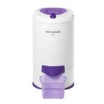 Secarropas centrifugo. 2800 RPM. Capacidad 5.5 kg. Gabinete de polipropileno blanco. Tambor de acero inoxidable. Incluye recipiente recolector de agua.