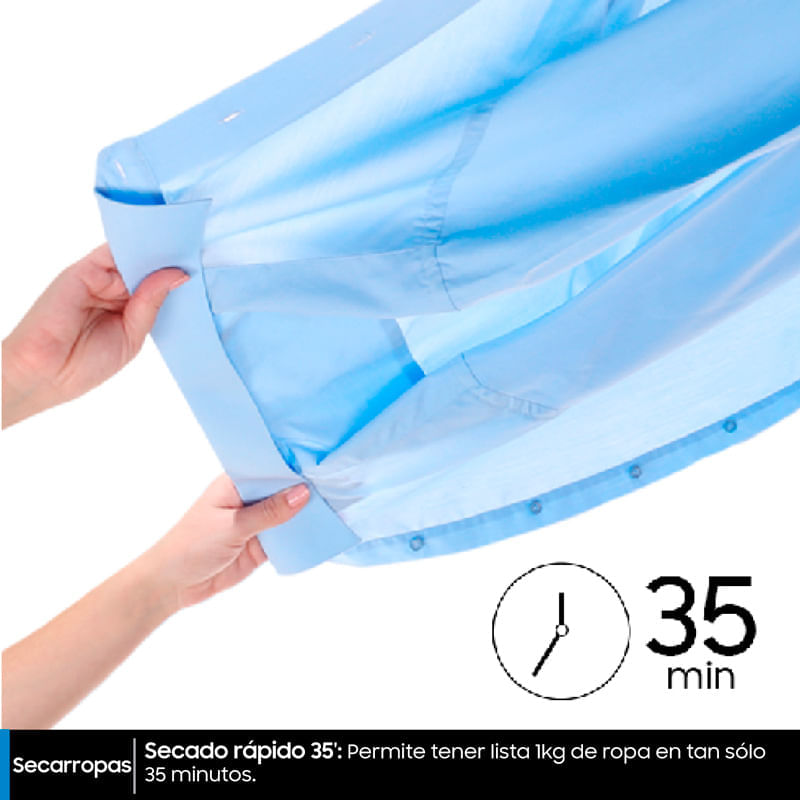 Secarropas. Capacidad 9 Kg. Sistema de secado por bomba de calor: eficiente, rentable y suave de secar la ropa. Tipo de motor Digital Inverter. 14 Programas. Carga frontal. Secado rapido en 35 Minutos. Secado automatico con OptimaDry: elimina la humedad y ajusta el tiempo de secado para que la ropa este lista rapidamente. Tambor de acero inoxidable. IA control: seca la ropa de forma facil y eficaz. Display LED. Puerta reversible. Funcion smart. Luz interior tambor. Seguro para ninos. Tecnologia HeatPump. Ropa sin arrugas seleccionando la opcion \"Wrinkle Prevent\". Filtro 2 en 1.