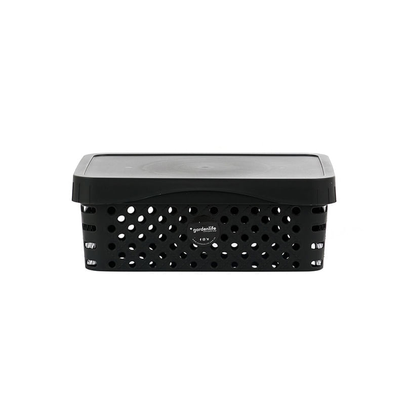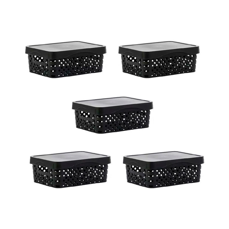 Set de 5 canastos calados con tapa. Material de polipropileno. 12 Litros. Apilable. Multiuso.