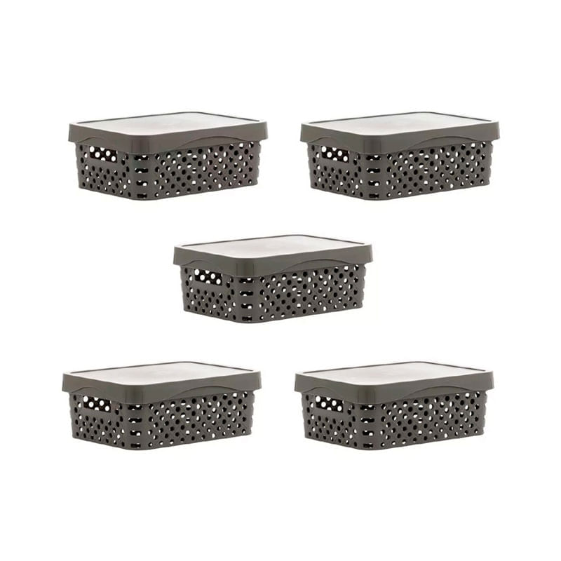 Set de 5 canastos calados con tapa. Material de polipropileno. 12 Litros. Apilable. Multiuso.