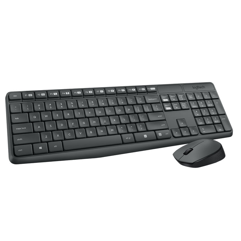 Combo Mouse y teclado inalambricos Logitech MK235. Una sencilla combinacion de teclado y mouse Plug and Play con una conexion inalambrica. Escribe comodamente en un teclado con distribucion habitual con teclas de direccion y teclado numerico de tamano normal y facil acceso a 15 teclas de acceso directo. Disfruta de duracion de pilas prolongada: 36 meses para el teclado y 12 meses para el raton. Con su construccion duradera, diseno a prueba de derrame de liquidos, tratamiento antidesgaste en cada tecla y robustas patas inclinables.MK235 esta pensado para durar.