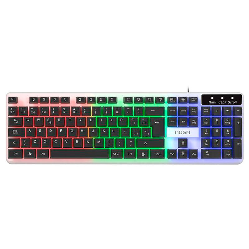 Teclado gamer LED multicolor con opcion de apagado de luces (FN+bloq despl). 104 Teclas reforzadas que soportan exigencias de uso. 12 Teclas multimedia y de web. Conexion USB 2.0. Longitud del cable 1.4m. Posee teclas claves para gamers y de web estrategicamente ubicadas, para agilizar el uso de Internet y funciones multimedia mas empleadas cotidianamente.