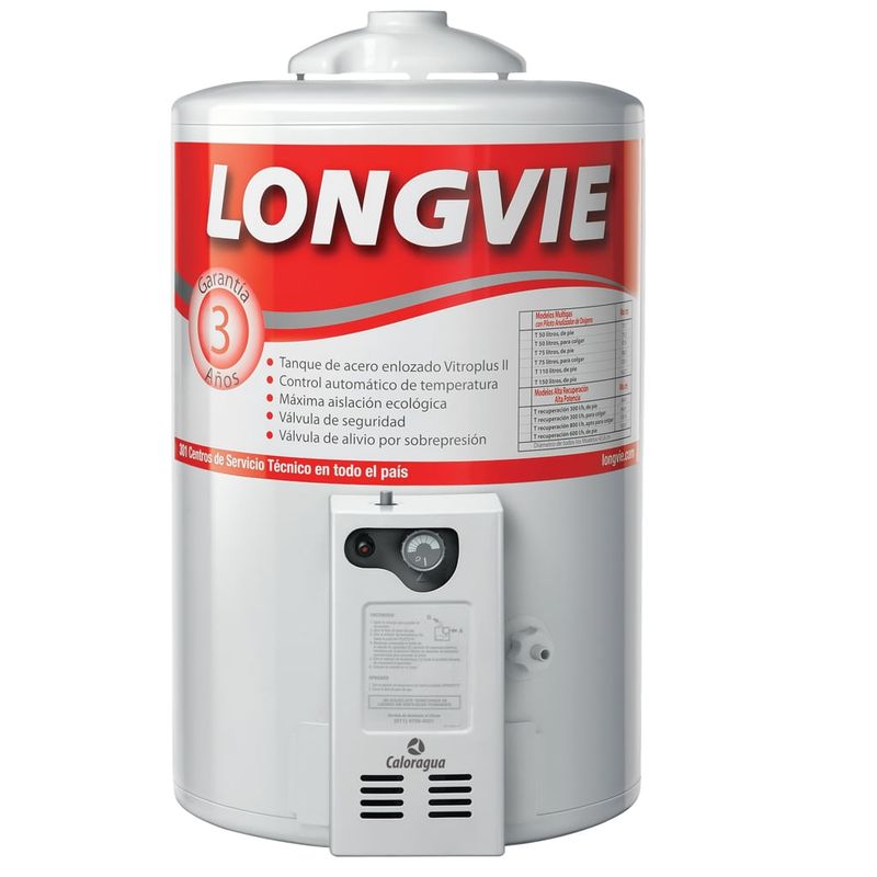 Recup.simultanea (135 l/h). Capacidad 50 lts. Control termostatico de temp. Tanque de acero enlozado Vitroplus II. Encendido Piezoelectrico. Piloto analizador de oxigeno. Barra anticorrosiva. Valvula de alivio p/sobrepresion. Conexion de agua inferior. La garantia es de 7 anos excepto para los componentes electricos que sera de 1 ano.